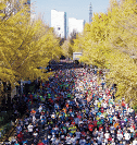 スタート会場はベイブリッジや港を行き交う船の眺めがロマンチックな山下公園。海外との豊かな交流を感じるモニュメントも多いのが特徴です。一面イチョウ並木のコースを駆け抜けよう!