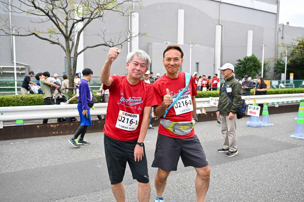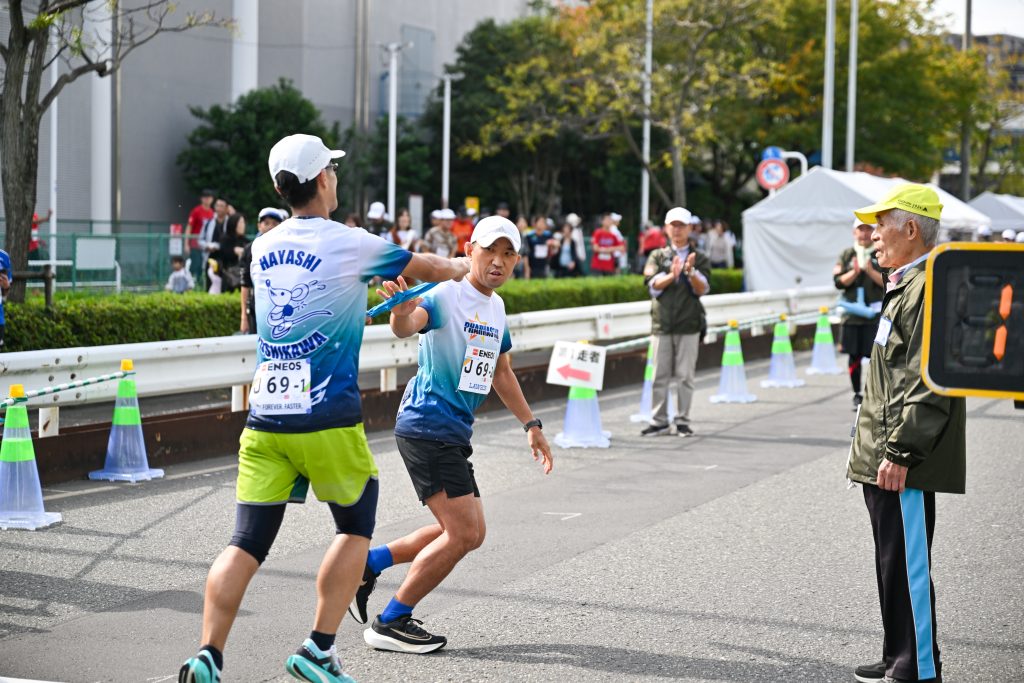 第1走者は、フルマラソンと同じ横浜ランドマークタワー前をスタートします。中継エリアの横浜市磯子スポーツセンター前で第2走者がタスキを受け取り、フィニッシュのパシフィコ横浜臨港パークまで走ります。