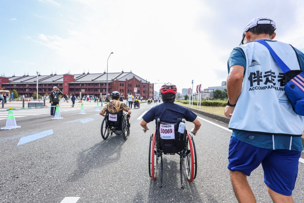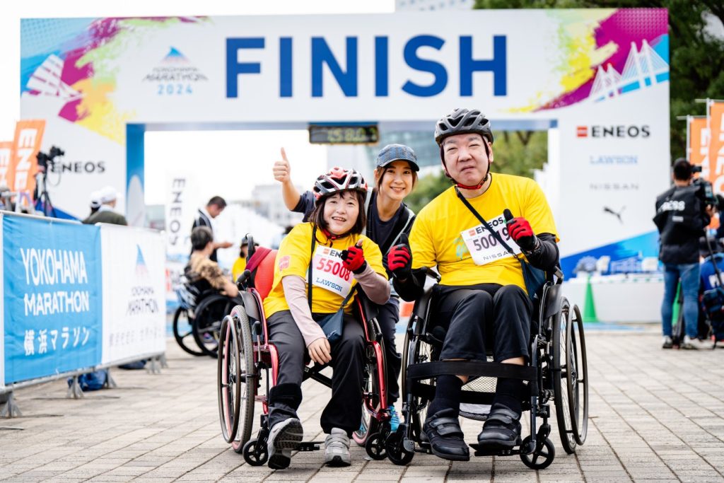 車いすの方も、伴走者登録(原則1名まで)が可能なので、ご家族やご友人とともに、「横浜マラソン」を気軽にお楽しみください。ゆったり走っても10時30分頃にはフィニッシュとなりますので、フィニッシュ後にはランチや観光など、横浜を満喫できます。