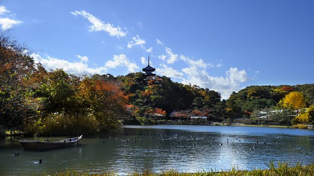 三溪園は、1906年に開園した敷地面積18万平方メートルの広大な日本庭園です。広大な敷地には歴史的建造物17棟が自然豊かな園内にたくみに配置されています。臨春閣や旧燈明寺三重塔など10棟は、重要文化財に指定されています。