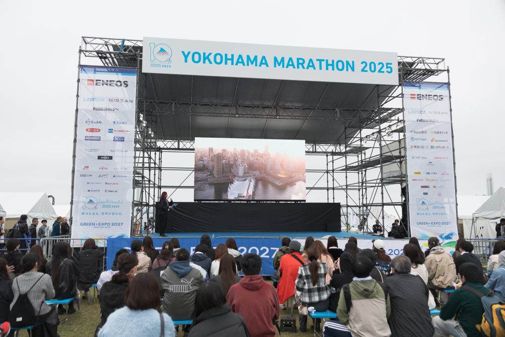 臨港パークは、パシフィコ横浜の屋外エリアにある横浜港を臨む抜群のロケーションが目の前に広がるみなとみらい地区最大の緑地です。広々とした芝生広場でマラソンの疲れを癒してください。大会当日は同会場で「横浜マラソンフェスタ」も開催予定です。